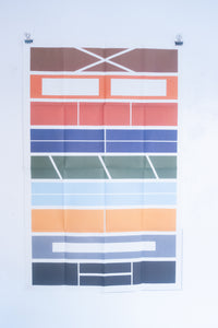 長方形の区画を計測する9つの方法、と記されただけのポスターブック。カバーを開き広げることで80x50cmのドローイングが現れる。